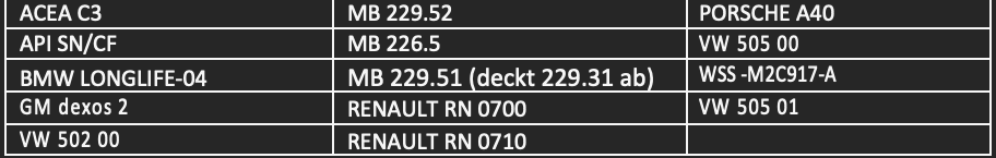 وفرنا لكم اجود انواع زيت المحرك المطابق لمواصفات كثير من ماركات السيارات الاوربيةالحجم : عبوة كبيره 5 لتربحسبة بسيطه كلفة اللتر ستكون 39 ريالزيت محرك هنجست الماني الصنعمطابق للمواصفات التاليةنتائج اختبار الزيت